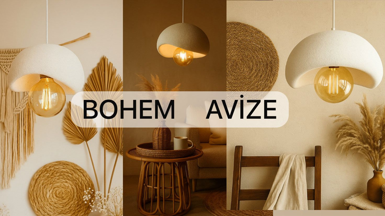 Bohem Beton Görünümlü Şapka Rustik Avize