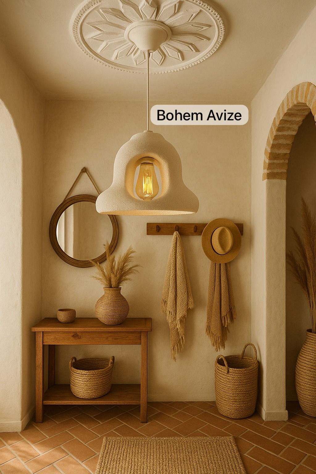 Bohem Beton Görünümlü Şapka Rustik Avize